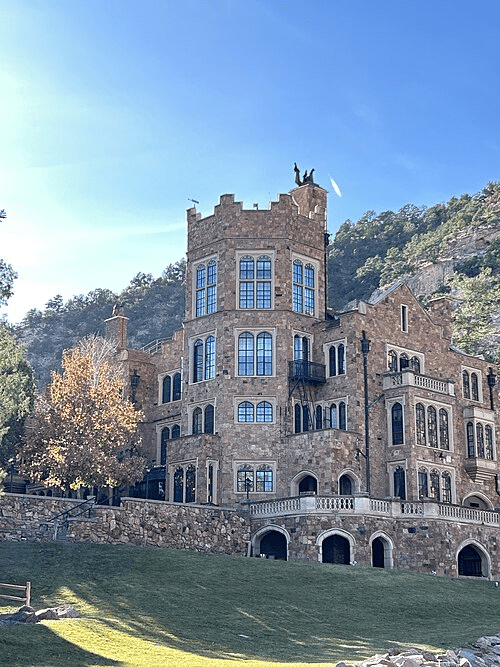 Glen Erie is a Tudor Castle built in 1871 by General William Jackson Palmer, an early resident of Colorado Springs who took an interest in the arcane inventions of Nicola Tesla and invited him to stay for a while. The adjacent property was the celebrated Flying W Ranch, famous for chuck wagon dinners served on rolled metal plates like the cowboys used.