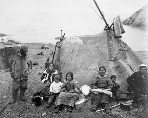 (Below is an Inuit family in front of a ‘Tupiq; (a tent made of animal skins and used in the warmer months) at Pond Inlet in 1906 before Canada drove them out.)